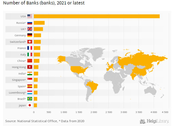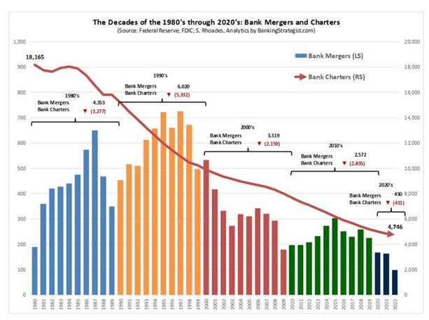 Any observer of the US Banking system will quickly realize that the US is an anomaly on the global scene with over 4,000 Banks and another 5,000 Credit Unions.