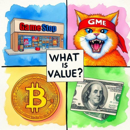 And today’s news seems to be obsessed with topics that touch on but don’t explain what money is and why new “things of value” are emerging. Governments around the world are printing money. Bitcoin is emerging as a global reserve currency. Memecoins and Memestocks are achieving and sustaining valuations that shock and awe the TradFi establishment.