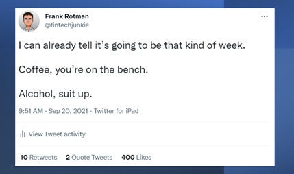 4/22: Last week was crazy because it was full of situations that reflected these changes. I knew I was going to struggle to deal with them, hence my Monday morning “humorous” tweet. And as the week played out, I doubled down on humor as an internal defense mechanism.